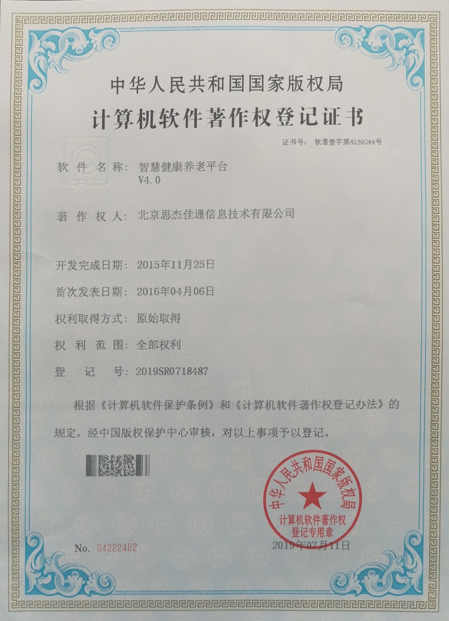 七、具有幾十項(xiàng)核心的養(yǎng)老平臺(tái)計(jì)算機(jī)軟件知識(shí)產(chǎn)權(quán)證書(shū)
